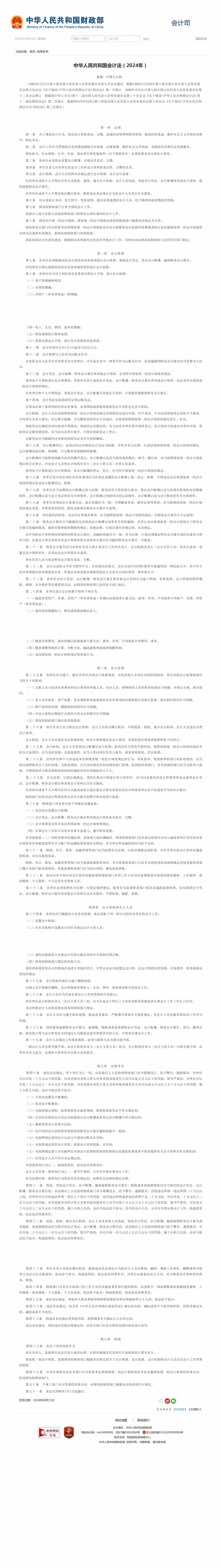 中华人民共和国会计法(2024年)