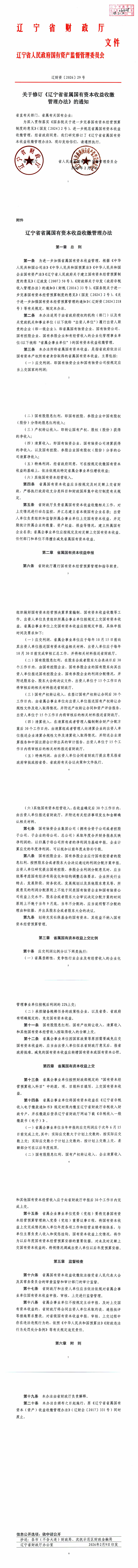 关于修订《辽宁省省属国有资本收益收缴管理办法》的通知