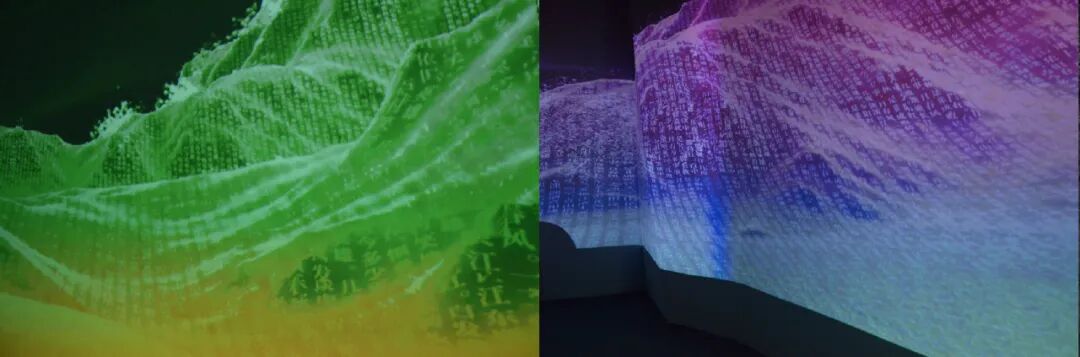5.动态视频单元,左墙面。配合古诗词的抽象图形表达,探讨多模态内容的表达方法。