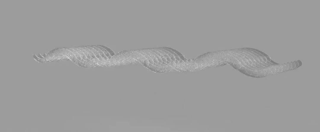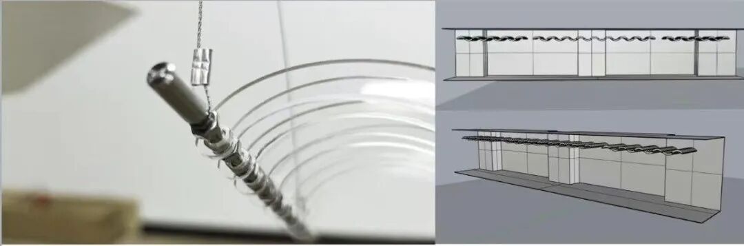 5.机械装置动态装置由透明材质构建出连续的波浪图形,隐喻了长江的浩渺与灵动,仿佛将自然之水凝聚于空中流动。长江之水的清凉与波动,历史与现代的融合特质也在观者与装置的交流中产生。