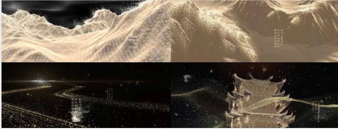 4.动态视频单元,绘制了长江文化数字景观,通过"江韵幻影"的动态语言反馈诗意的律动变幻。