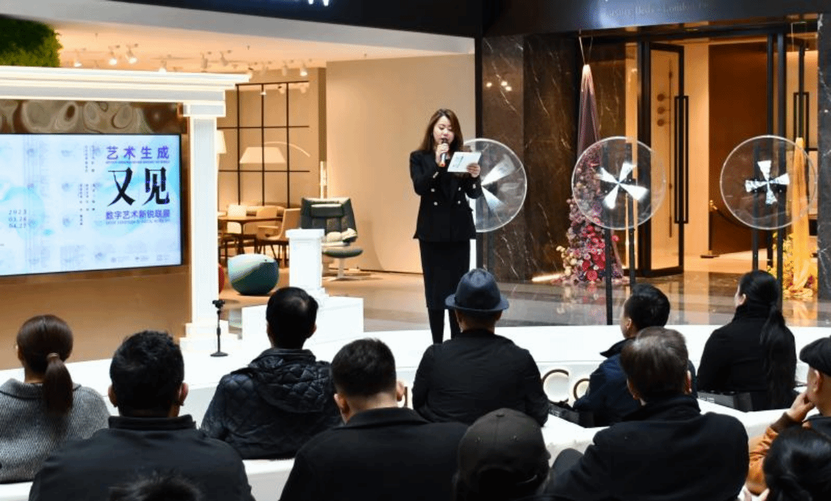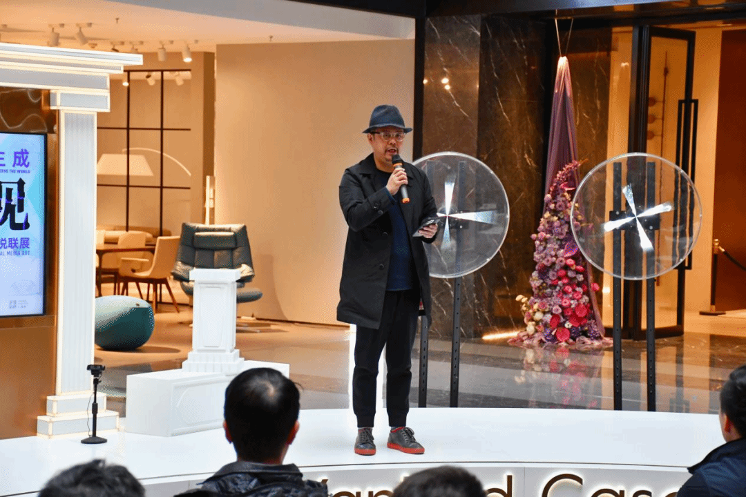 鲁迅美术学院中英数字媒体艺术学院企业导师、特聘教授、深圳显君设计机构创始人郭显君先生发表开幕感言。他表示十二位青年艺术家的作品,是一次具有突破性的设计艺术实践,更是一次“艺术生成”的时代现场。青年艺术家们以内观“外化于形”与观者“外观于心”形成内外交融碰撞,是视觉与被视觉的融合,是一次设计哲学的视觉艺术实践。仁恒居的商业艺术环境更是触发了人域场的交融,让数字化审美延伸到更为广阔的时空之中。