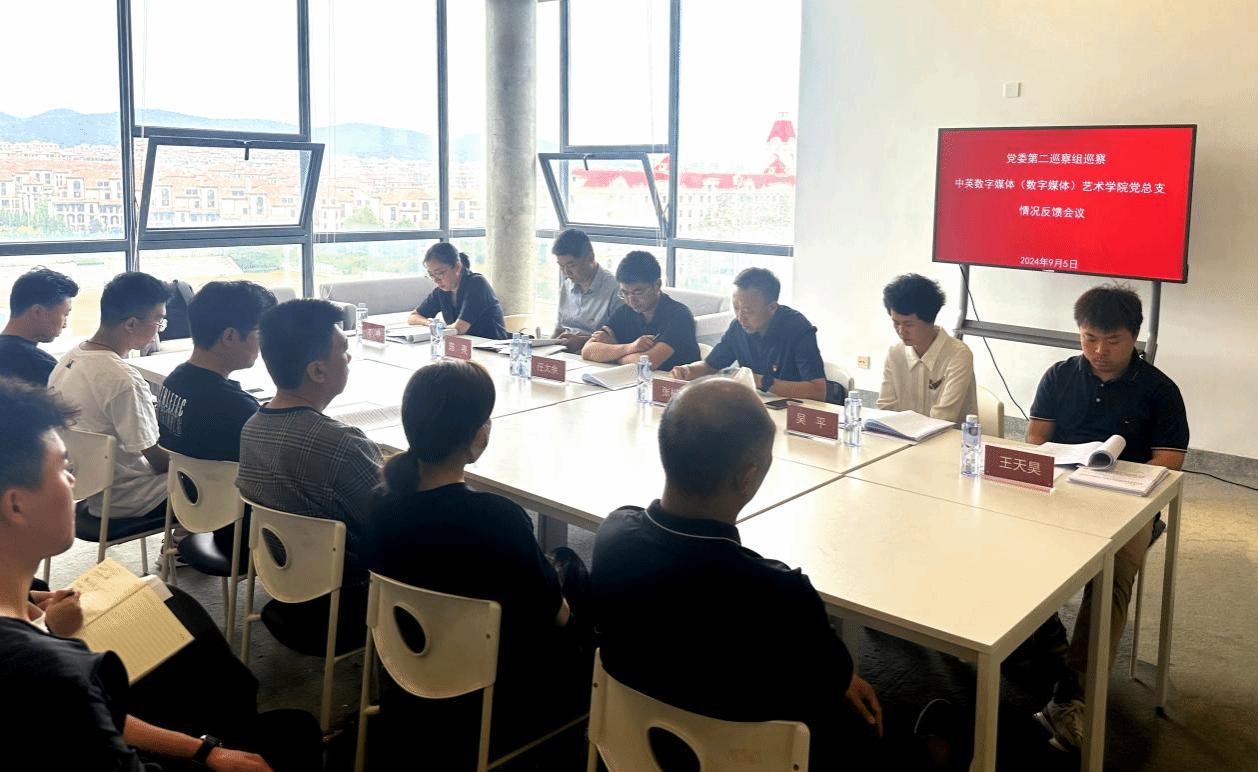 党委巡察工作领导小组成员、党委巡察办主任任太余,党委第二巡察组组长张松川,党委巡察办和巡察组有关成员,中英数字媒体(数字媒体)艺术学院领导班子成员出席会议;中英数字媒体(数字媒体)艺术学院教师、部分学生代表参加会议。编辑:杨晨乐