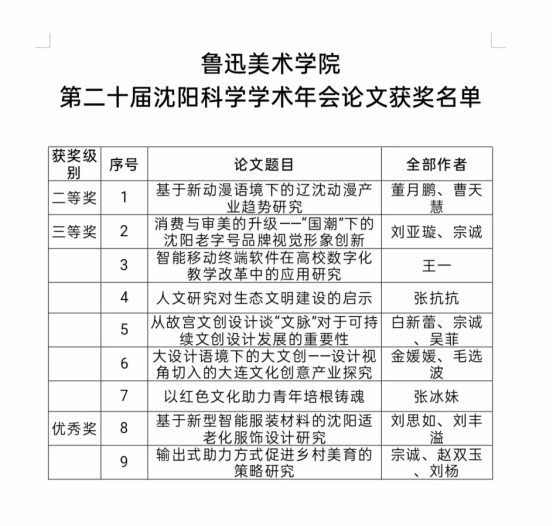 大连校区基础教学部张抗抗老师的《人文研究对生态文明建设的启示》、吴菲老师的《从故宫文创设计谈“文脉”对于可持续文创设计发展的重要性》,在第二十届沈阳科学学术年会论文评选中,获得2项三等奖。