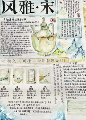 颁奖仪式现场,大连校区基础教学部领导、课程教师及获奖学生齐聚一堂。经专家评审,活动共评选出“最佳创意奖”“主题诠释奖”“艺术表现奖”及“优秀奖”四大奖项,共有20名学生凭借出色的创作获得表彰。获奖代表在发言中分享了从主题构思到艺术转化的心路历程。其中,作品《风雅·宋》以手抄报形式对宋代“四雅”生活进行了当代解读,生动诠释了传统审美与现代精神的共鸣,充分展现了课程在文化传承与美育浸润方面的教学实效。