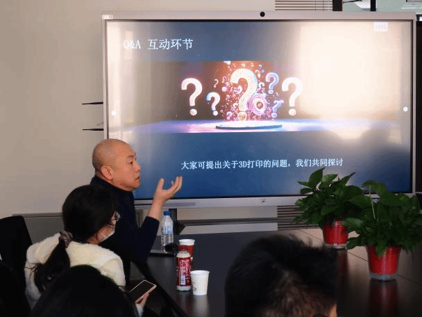 在提问环节,同学们积极发言。其中一位同学向柳建阁先生提问:“3D打印一套完整的模型素体,耗时与耗材成本如何?流程是怎样的?”柳先生耐心解答,从模型优化、切片设置、材料选择到后处理,逐步拆解流程,并强调“设计为打印服务”的理念,让在座师生对3D打印的实践细节有了更清晰的认识。