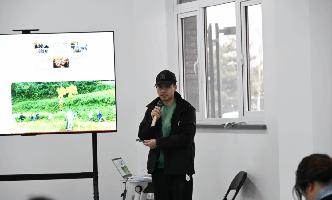 第一位发言人是袁帅同学,带来《越后妻有大地艺术节项目案例分析与官网赏析》,演讲伊始他对公共艺术、大地艺术和大地艺术节三个重要概念进行阐释。随后,他通过具体案例解析了日本越后妻有艺术节的运作机制与艺术表达,并以六个举办地区的大地艺术作品为例,完成了由点到面的精细分析,揭示了艺术如何与乡村、自然共生共长,艺术家如何因地制宜、面向大众,协同创造出具有地域印记的艺术奥秘。