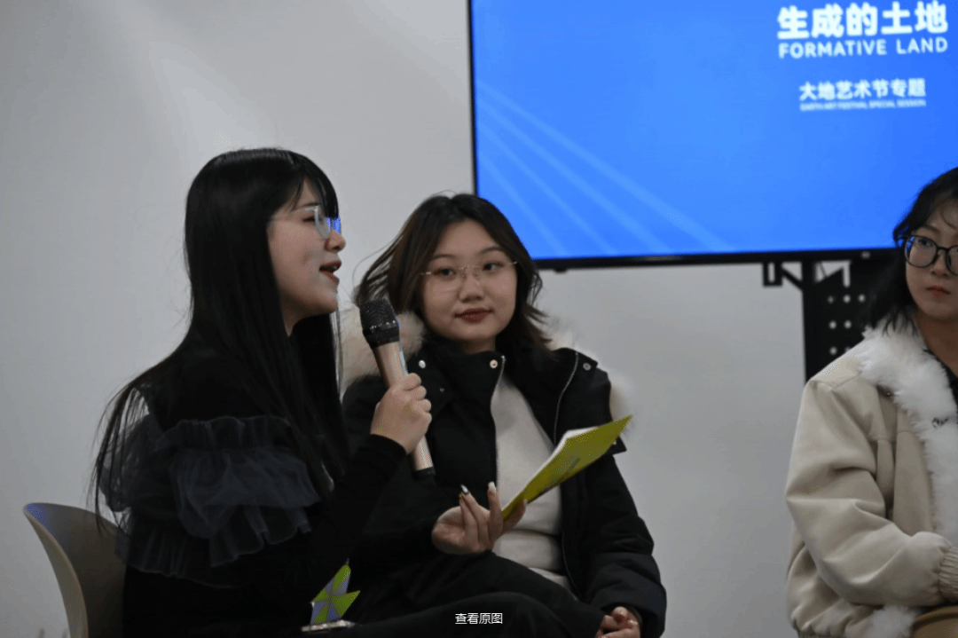 罗美麟同学首先对“大地艺术如何避免同质化”“艺术家其中扮演的角色”两个方面提出疑问,段晨老师则围绕“当代艺术与地域文化的生成关系”进行回答,强调艺术家在进行地域性创作时要因地制宜,充分顾及当地人的生活需求;并且点出艺术与地域的结合讲求生成而非移植。接着人文学院的冯超老师展开补充,他从艺术介入社会的角度出发,探讨了艺术节如何成为连接城市与乡土、艺术与公众的桥梁,并强调了“在地性”在当代公共艺术中的核心价值。