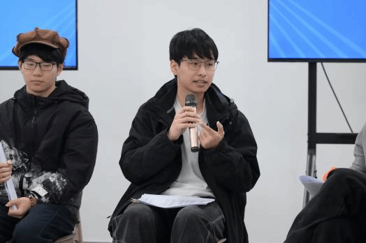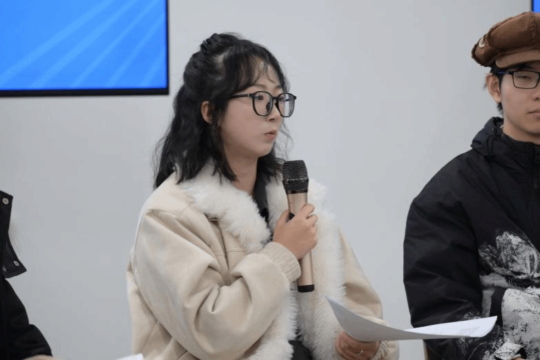 对谈环节,嘉宾与学生代表们围坐交流,拉近彼此距离。共有八位人员参与对谈,他们分别是:特邀嘉宾——资深艺术自媒体人段晨先生、人文学院艺术管理系主任冯超老师、2024级人文学院外国美术史方向研究生陈芳璐、来自人文学院2024级艺术管理方向的研究生崔子一、毛锴燃和李深奥、以及2024级人文学院艺术哲学方向研究生翁嘉辉。2024级人文学院外国美术史方向的研究生罗美麟同学担任此次对谈的主持人。