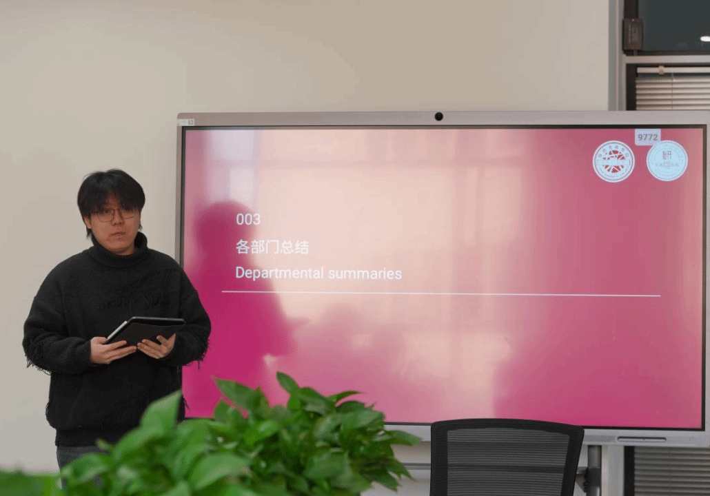 在大会主持人致开幕词后,研会副主席谢雅涵同学详细介绍了内部流程协调优化、宣传平台建设等方面的进展情况,并且对未来工作提出了展望。紧接着,副主席孙吴季含同学进行本学期总结,系统梳理了各部门在学术活动组织、校际合作拓展等方面取得的成果,并对于工作中遇到的挑战与改进方向进行了汇报。整个汇报过程条理清晰、内容扎实,充分体现了研会工作的系统性与实效性。
