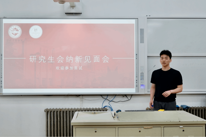 2025年9月17日,第七届研究生会纳新面试在综合楼综合二教室举行。研究生会主席高铭泽在开场致辞中,系统的介绍了研究生会各部门职能,并特别感谢了同学们的积极报名与热情参与。最后,高主席向所有候选人表达了殷切期望,祝愿大家充分展示才华,取得优异成绩。