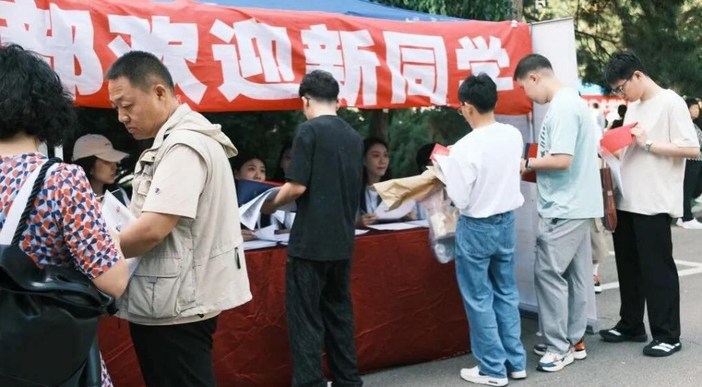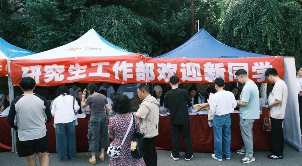 一群朝气蓬勃的研一新生们等候在报到处。