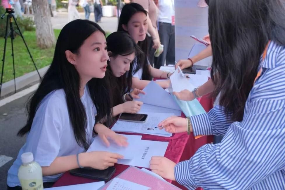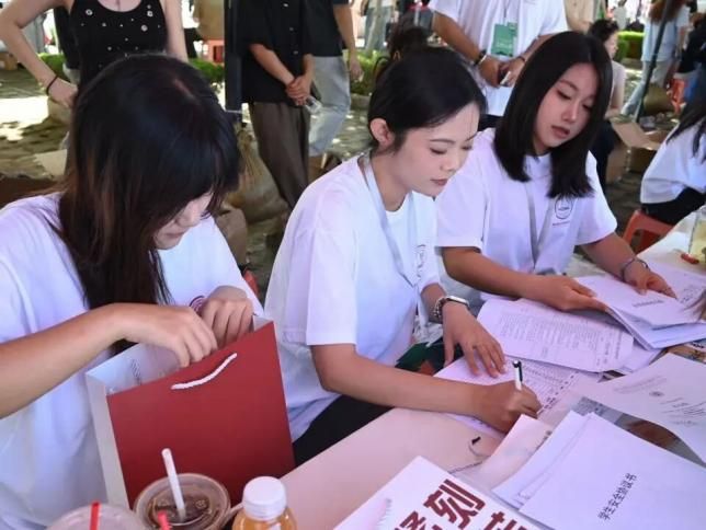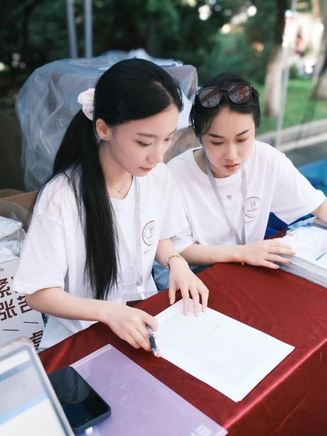 志愿者们一丝不苟地收集着新生的报到材料,逐一核对、分类整理,并耐心解答着每一个小问题。