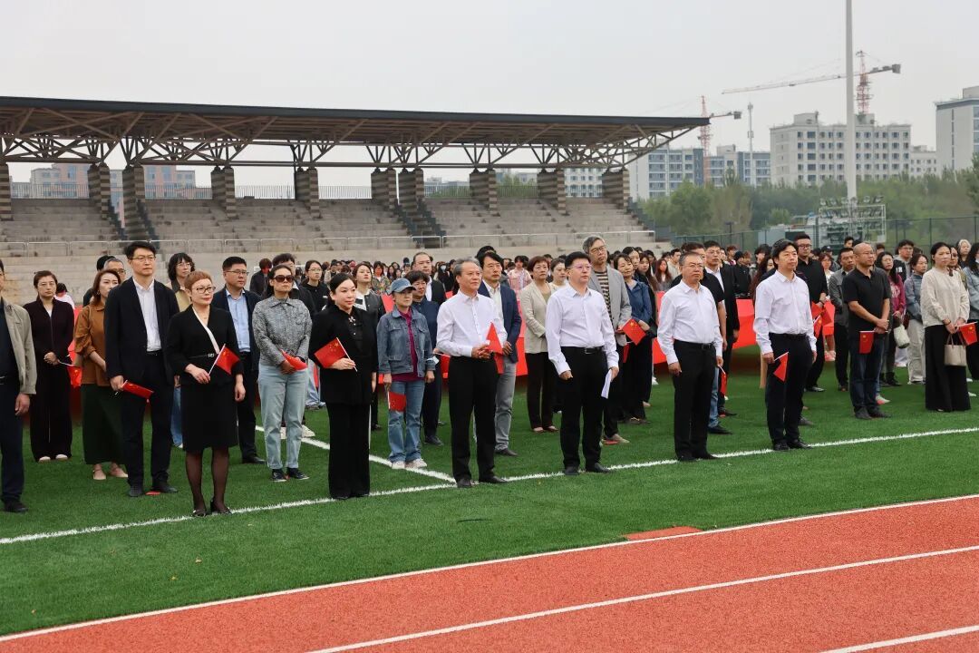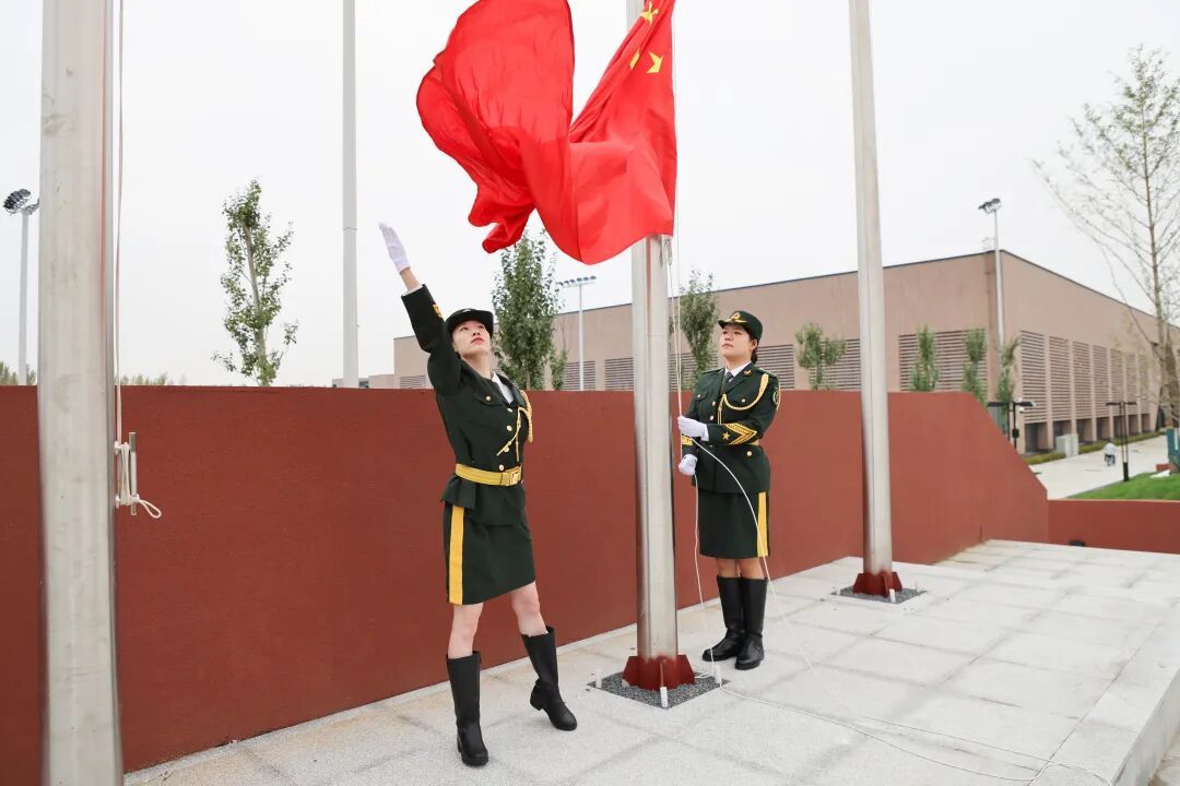 国歌奏响,五星红旗冉冉升起。全体师生齐唱国歌、行注目礼,歌声响彻沈阳莫子山校区新校园。