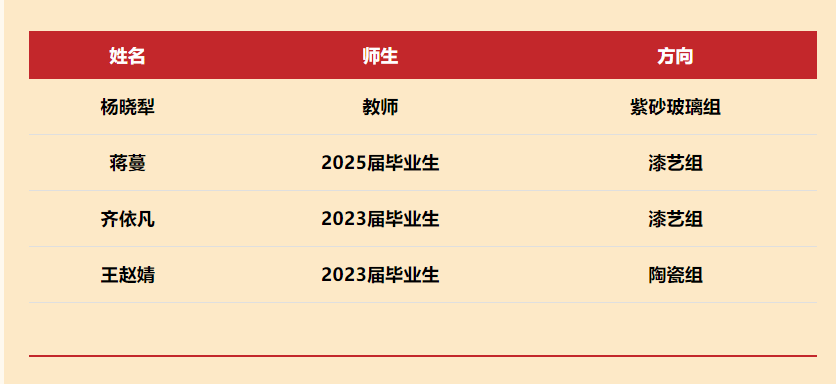 本次项目从今年7月启动,最终在全国范围内选拔出105位青年工艺美术工作者。我院有四位师生同时入选,这既是对他们个人努力与才华的认可,也反映了我们在手工艺教学和实践方面的扎实积累。