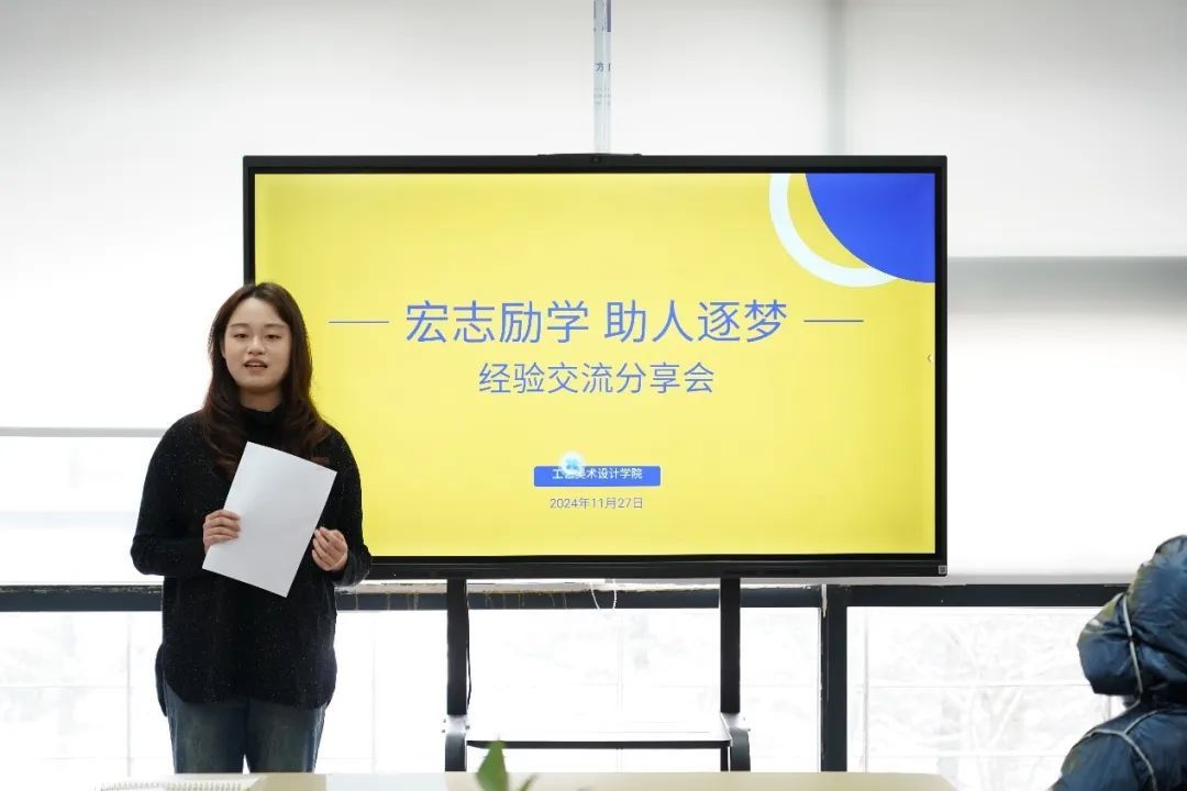 11月27日,工艺美术设计学院面向在校本科生举办了“宏志励学 助人筑梦”主题学习经验交流分享会。活动邀请了优秀学长学姐代表分享了他们亲身经历和感悟,不仅让学弟学妹们得以窥见那些成功背后的汗水与坚持,更为他们搭建起了一座通往梦想彼岸的桥梁。
