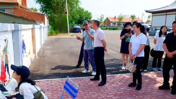 盛夏酷暑,践行团成员们头顶烈日、挥洒画笔,将一幅幅民族团结图景展现在墙面上。从构思设计到打稿上色,每一笔都凝聚了对中华民族共同体的理解与表达。期间,恰逢铁岭市委统战部到村里调研,在现场,他们被同学们顶着烈日、挥汗作画的认真模样深深打动,那一笔一画间,饱含着对民族团结的真情与坚守。有人动情地说“民族团结不只写在文件上,也可以画在墙上、留在心里。谢谢同学们,你们让我们看到了青年人最美的模样!”