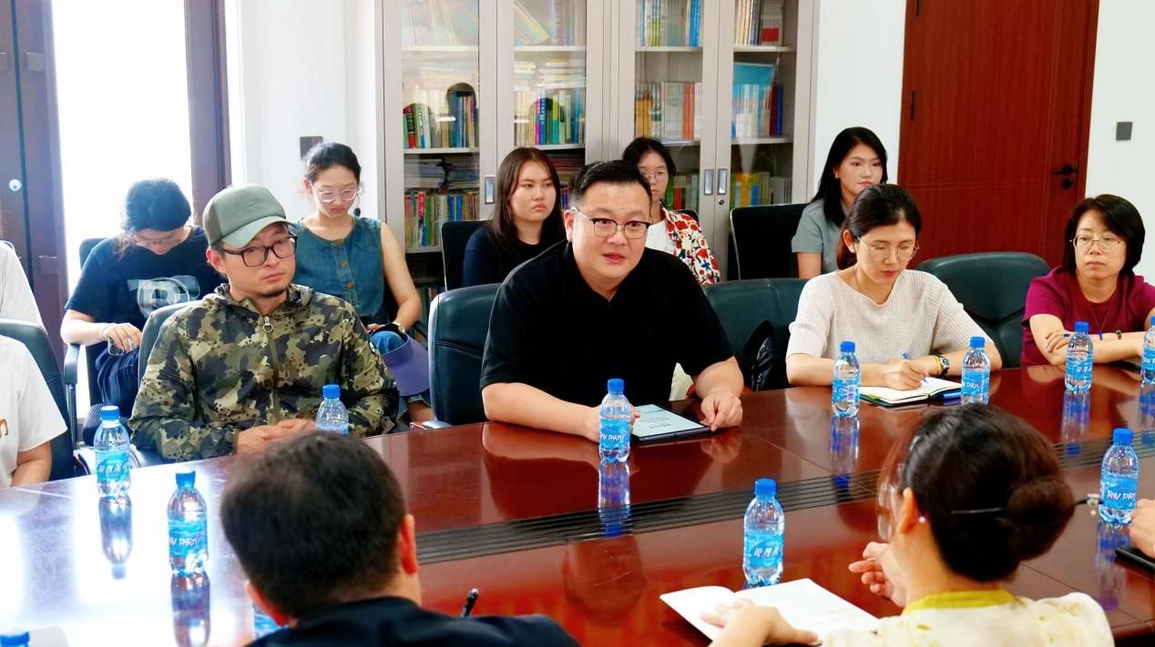 7月10日,在实践座谈会上,来自我校工艺美术设计学院、地方政府与村委的代表围坐一堂,共同探讨“艺术如何服务基层治理与乡村振兴”。与会代表一致认为,中华民族共同体的建设,离不开青年一代的智慧与力量;而青年人才的专业素养与文化创造力,正是乡村文化振兴最宝贵的资源。大家寄语践行团成员,希望他们继续发挥专业优势,把民族文化的根脉融入设计创作,用艺术为乡村的文化建设添砖加瓦。