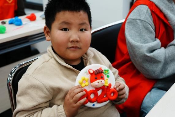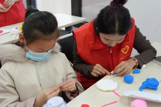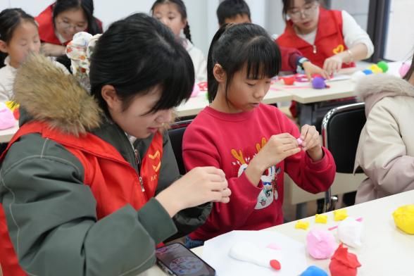 志愿者结合专业知识,从黏土的色彩搭配、造型塑造、新年元素融合等方面进行示范教学,比如把剪纸的窗花纹样、生肖雕塑的立体形态转化为黏土创作思路,让孩子们在轻松氛围中解锁手工技巧。