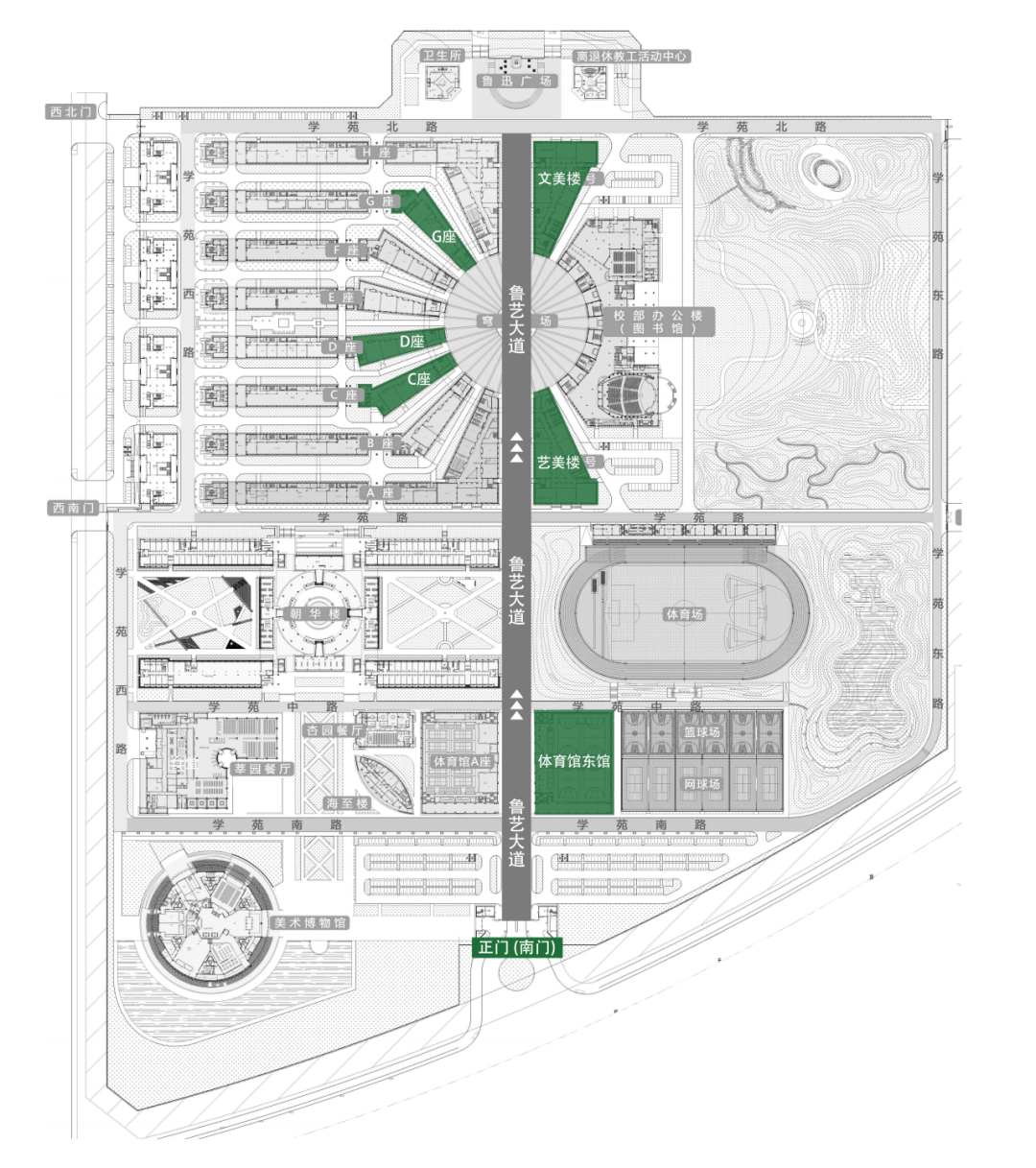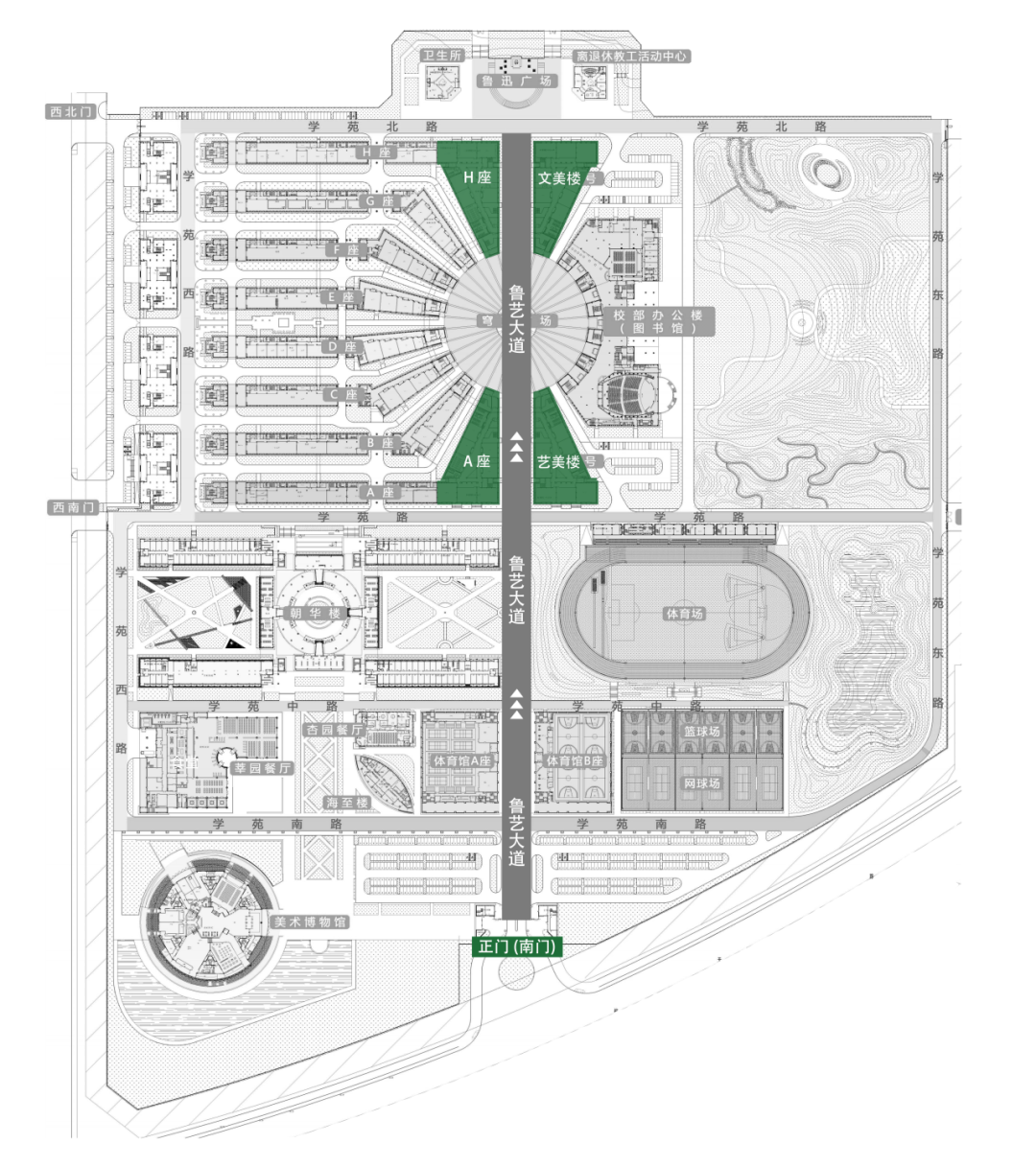 导航设置:鲁迅美术学院(莫子山校区)正门(南门)。