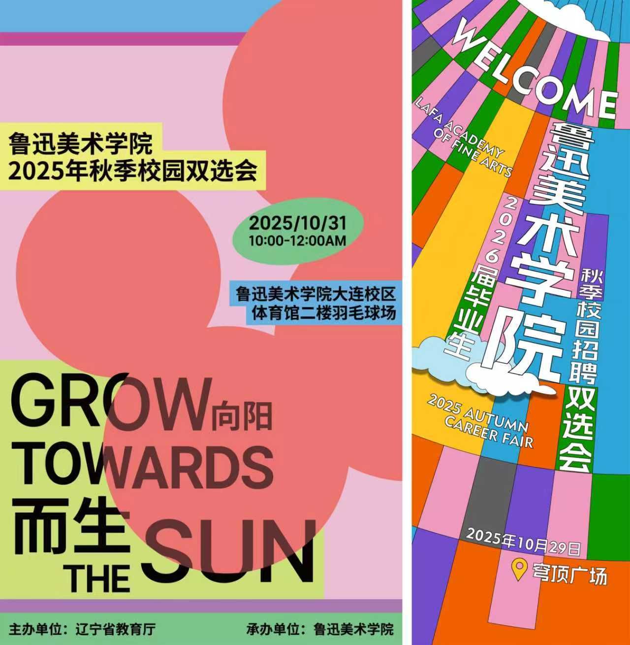 为深入贯彻落实《中共中央国务院关于实施就业优先战略促进高质量充分就业的意见》,人力资源社会保障部、教育部、财政部下发《关于做好2025年高校毕业生等青年就业工作的通知》和“稳就业”“保就业”的决策部署,精准搭建人才供需对接桥梁,切实保障2026届毕业生充分、高质量就业,鲁迅美术学院于2025年10月29日和31日,分别在沈阳莫子山校区和大连校区举办“鲁迅美术学院2025年秋季校园招聘双选会”。