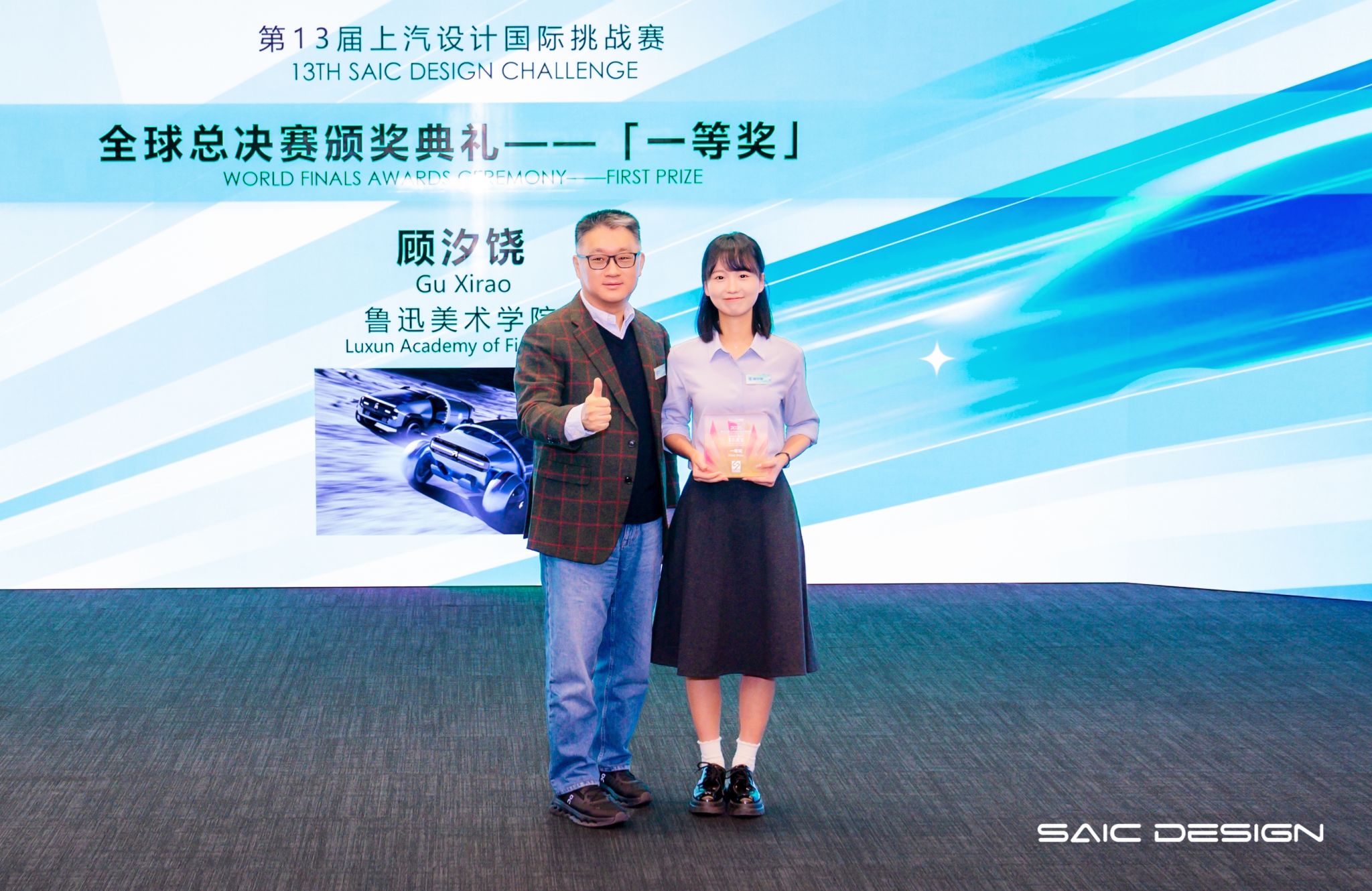 大赛历经多轮严格评审,从创意理念、设计逻辑到落地可行性等多个维度对参赛作品进行了综合考量。评审团汇聚了行业内的顶尖专家,其中涵盖中国设计学理论家、设计教育家、学者王受之,上汽集团创新研发总院总设计师、上汽英国技术中心总经理邵景峰,泛亚汽车前设计总监、M.I.N.Design创始人曹敏,以及上汽设计集团创新研发总院全球设计副总裁Jozef Kaban等。上汽集团总裁贾建旭为顾汐饶同学颁发了大赛一等奖。