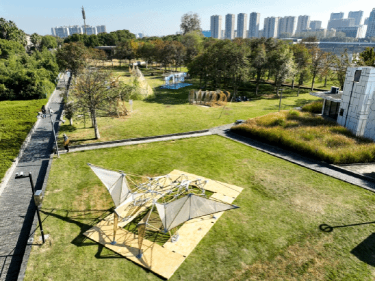 本届展览具有“两突破+一亮点”:地域突破——展览首次落地南方,选用南方材料;选址突破——展览首次面向社会,入驻城市公园;一亮点——展览为学生们创造了与世界知名设计大师用作品“对话”的机会。金华建筑艺术公园拥有多个由普利兹克建筑奖得主设计的小型建筑,这些都极大地激发了青年学子的创新思维和实践能力。