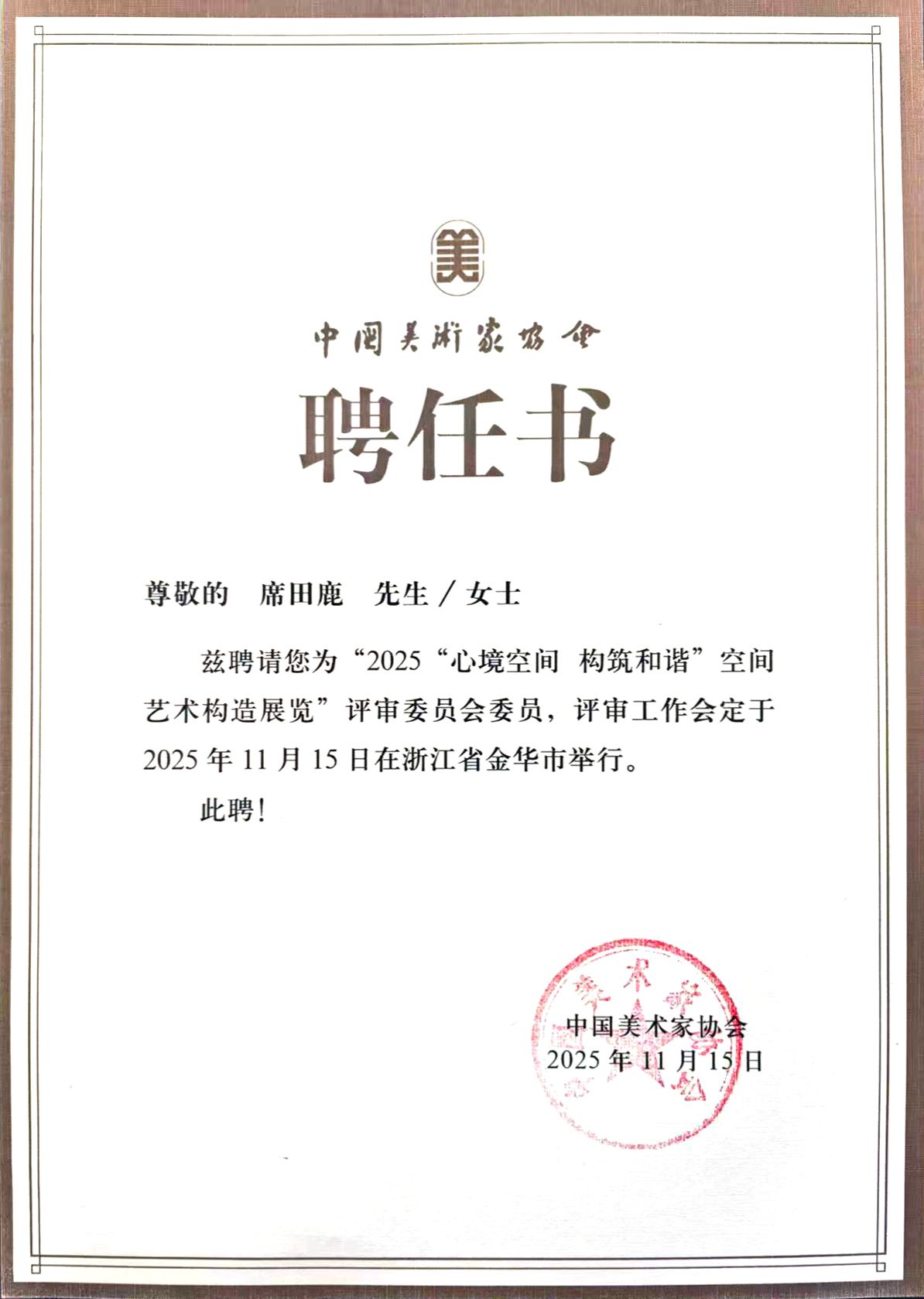 建筑艺术设计学院院长席田鹿教授被聘为本届展览评审委员会委员