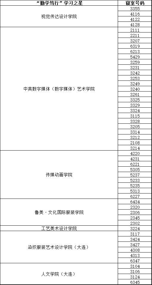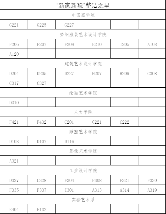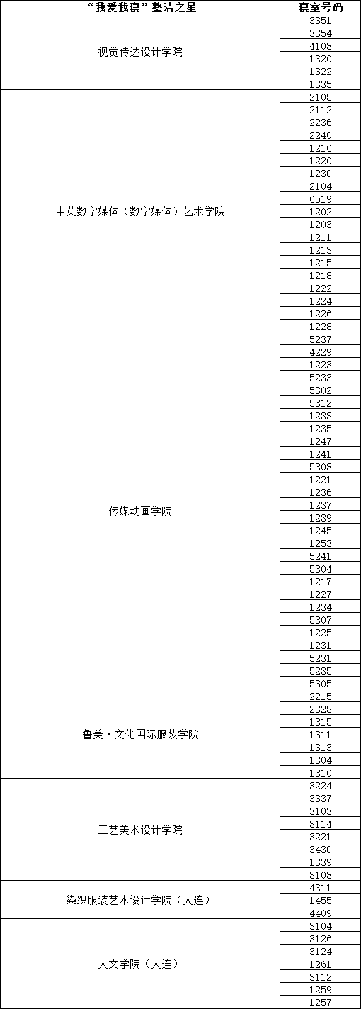 依照《鲁迅美术学院“一站式”学生社区星级寝室评选活动方案》,经各院系、学生公寓管理科推荐,党委组织部、党委学生工作部审核,拟推荐沈阳校区79间、大连校区150间寝室获奖,现将名单公示如下。(详见附件)