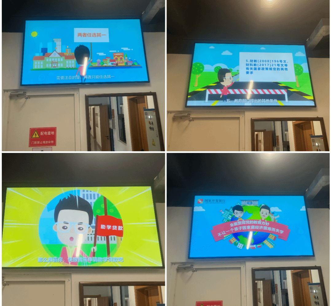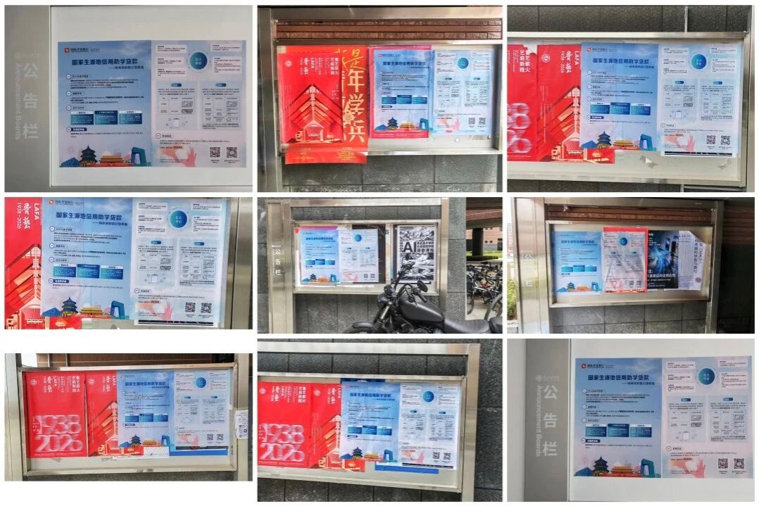 我校常态化开展生源地信用助学贷款政策宣传工作,通过在校园公告栏张贴政策海报、“一站式”学生社区宣传屏滚动展示、线上平台精准推送等多种形式,构建起线上线下联动、覆盖广泛的“全方位”政策传播网络。同时,学校专门设立助学贷款咨询邮箱与热线电话,及时回应学生疑问、解读办理流程,切实为有需求的学生提供清晰、便捷的政策咨询服务,确保资助精准化服务。
