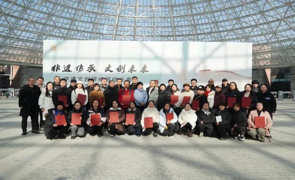 在结业仪式活动中,我校社会美育学院直属党支部书记李文刚、人文学院教师代表耿阳、学生代表王冰分别发言。同时,与会领导为顺利完成研修课程的四十位非遗传承人依次颁发了结业证书。未来学校将以此次活动为契机,积极搭建平台,力促非遗传承与高校教育进一步深度融合。