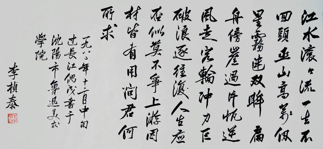 李桢泰先生性格诚实开朗幽默,不仅在色彩学和专业,历史文学乃至数理化知识渊博,对新生科技极感兴趣。他的书法也在多年形成了自己隽逸劲美的风格,他的水彩寥寥几笔即生动纸上,只是颠沛流离,其水彩和图案作品没得已保存。