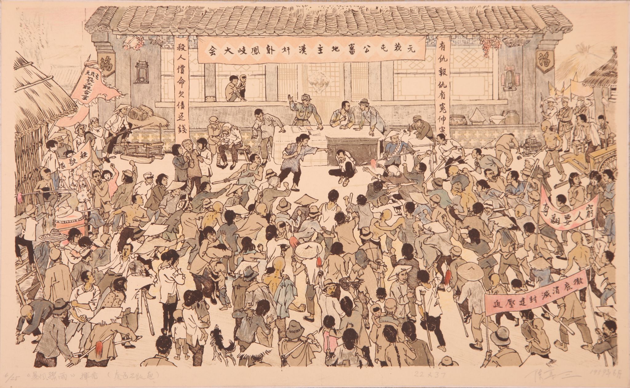 陈尊三(1929—2010),辽宁铁岭人,版画家,美术教育家,中国美术家协会会员,中国版画家协会会员。鲁迅美术学院教授。1950年毕业于东北鲁迅文艺学院美术部研究室,留校任教。1953年被国家派往 苏联留学,在列宁格勒国立列宾绘画、雕塑、建筑学院版画系攻读书籍装帧及插图、石版画专业。他虽然身在国外,但对祖国民族民间艺术仍怀有深情,为创作毕业作品《 暴风骤雨》石版插图,专程回国去北方农村深入生活近三个月,并研究了明清木版插图的艺术手法,从而创作出一套具有鲜明民族风格的石版画,获得最高分数,被授予“艺术家---版画家”的称号。