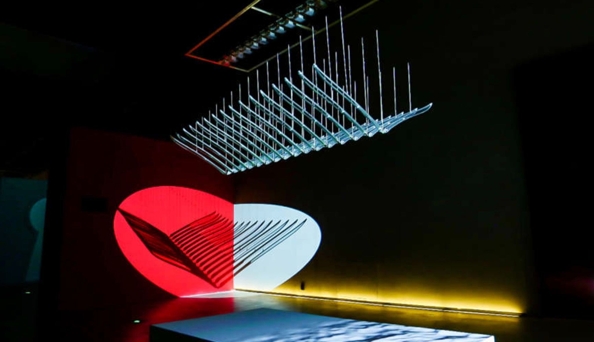 作品名称:《一》作品材质:白钢,电子元件作品尺寸:长 700cm 宽 200cm 高350cm作品属性:机械动态装置创作年代:2021年机械动态装置作品《一》利用隶书中“一”的具象造型进行提炼转化,形成作品造型的基础元素,作品运动中通过对“一”的视觉化重复叠加,强化“一”的多重韵律生成与节奏变换。“一”生二,二生三,三生万物。作品的生成也渗透出中国传统道家思想的生成之势,万物之序往往潜藏在生成之势中。
