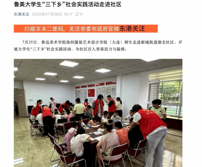 本次活动获东港市委宣传部“东港关注”公众号报道,成为鲁美学子“以艺润人,以行化人”的生动缩影。