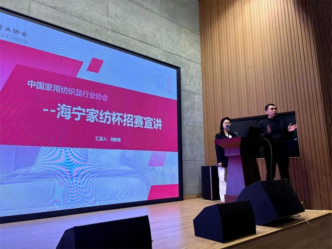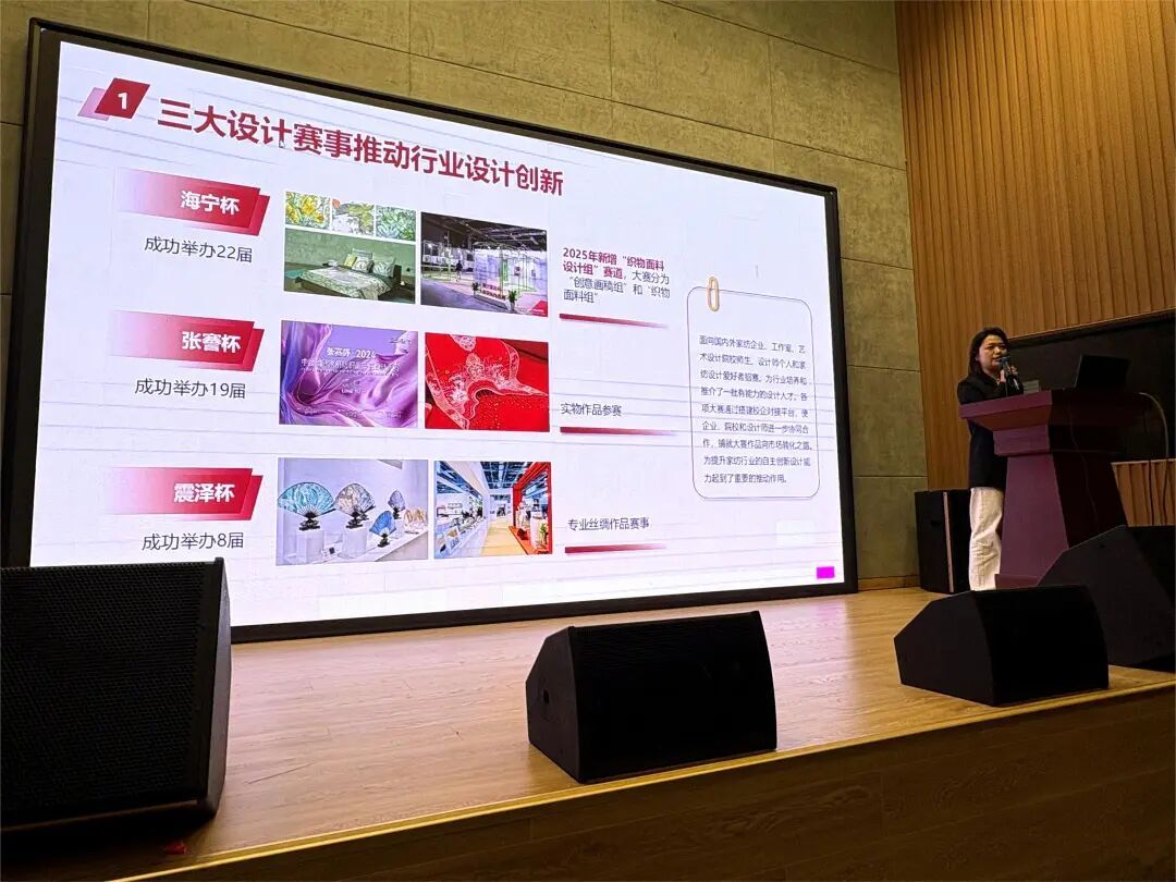 中国家用纺织品行业协会副秘书长、时尚研究拓展部主任贾昊携三大行业顶级赛事——“海宁杯”中国国际家用纺织品创意设计大赛、“震泽杯”中国丝绸家用纺织品创意设计大赛、“张謇杯”中国国际家用纺织品产品设计大赛——开展校园招赛宣讲。两位专家详细介绍了赛事主旨、评审机制及本年度新增特色赛道,强调大赛对发掘设计新锐、推动产学研转化的战略意义。贾昊副秘书长表示:“鲁美学子的作品屡次在行业赛事中斩获佳绩,其专业素养与创新能力已成为业界标杆。期待更多师生通过赛事平台与产业前沿深度接轨。”