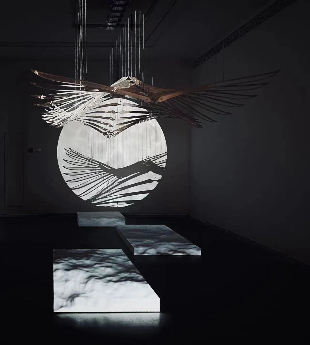 许毅博老师的获奖作品是通过观众对美术馆与公共空间的预期感受、个体情感经验数据化的方式所进行的动态装置创作研究成果。作品基于观众对艺术作品的反馈数据作为创作基础,最终形成标签化“优质”作品创作标准,并以此为原则进行创作行为实验,这种创作行为方式对美术馆、公共空间的品评标准提出质疑,对当代艺术是否存在方法论等概念进行回应。作品最终采用隶书中“一”的文字造型 —— 一波三折作为动态机械装置的基础元素,通过数学与物理的自动化逻辑对其进行阵列运动,这一过程刚好对应中国传统哲学中“一生万物,万物归一”的造物逻辑,同时也使其概念中“能指”与“所指”相互统一,将形式与概念相互统一。