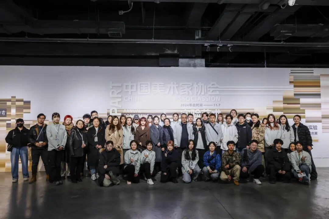 中国美术家协会实验艺术委员会年会主题展板前学院领导和专家合影