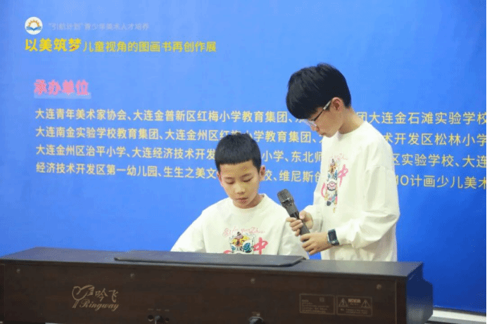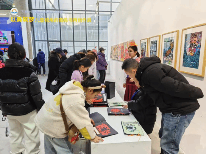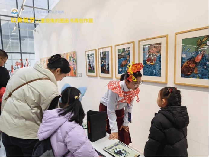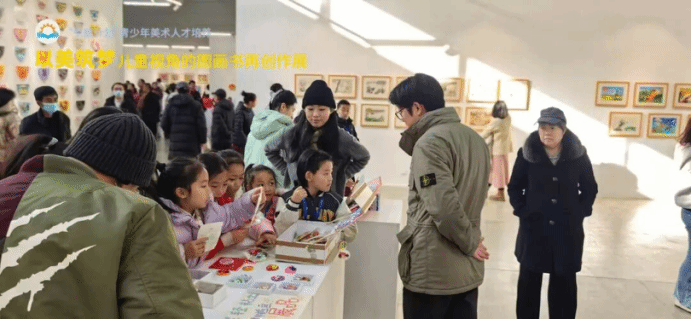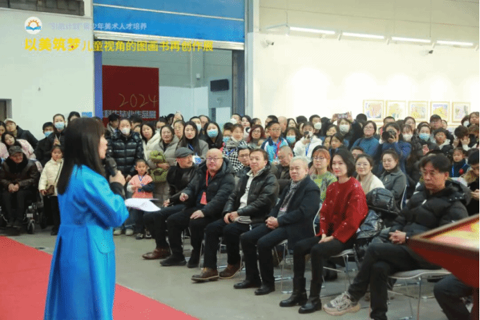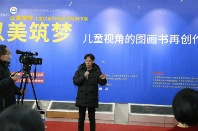 2024年12月28日,"以美筑梦"儿童视角的图画书再创作展开幕式,在鲁迅美术学院大连校区艺术博物馆举行。40余位来自中国美术家协会连环画艺委会、中国美协少儿艺委会、中国美协插图装帧艺委会的领导,以及参加新时代青年人才培养计划——儿童图画书创作100”(2024)项目(二期)培训的授课教授、专家及创作学员出席了开幕式,大连金普新区31所参展单位的师生、家长600余人参加了开幕式。