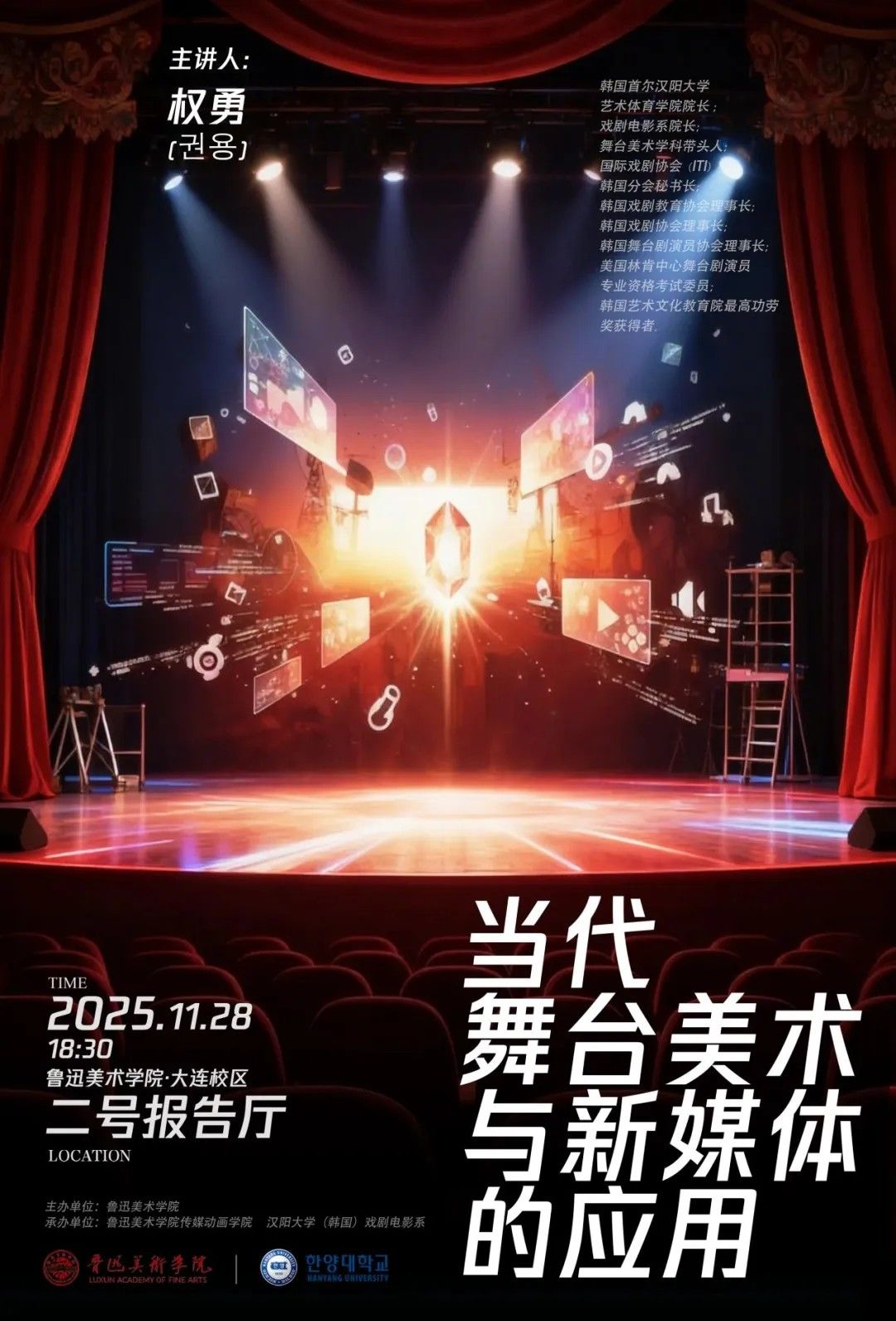 近日鲁迅美术学院传媒动画学院与韩国汉阳大学戏剧电影系合作完成的实验话剧《葬花曲》圆满落幕。韩国⾸尔汉阳⼤学戏剧电影系院长、舞台美术与戏剧构作专家权勇教授担任本次展演的艺术顾问,并为戏剧影视设计美术设计专业师生们带来了一场关于舞台美术的未来发展的精彩讲座。当下现代戏剧往往缺乏足够的戏剧性与吸引力,让观众感到索然无味;神话与传奇性的缺失使得作品在情感层面空洞化;传统的观演关系将观众置于被动接受的位置,使观众参与感降低而导致共情困难;...