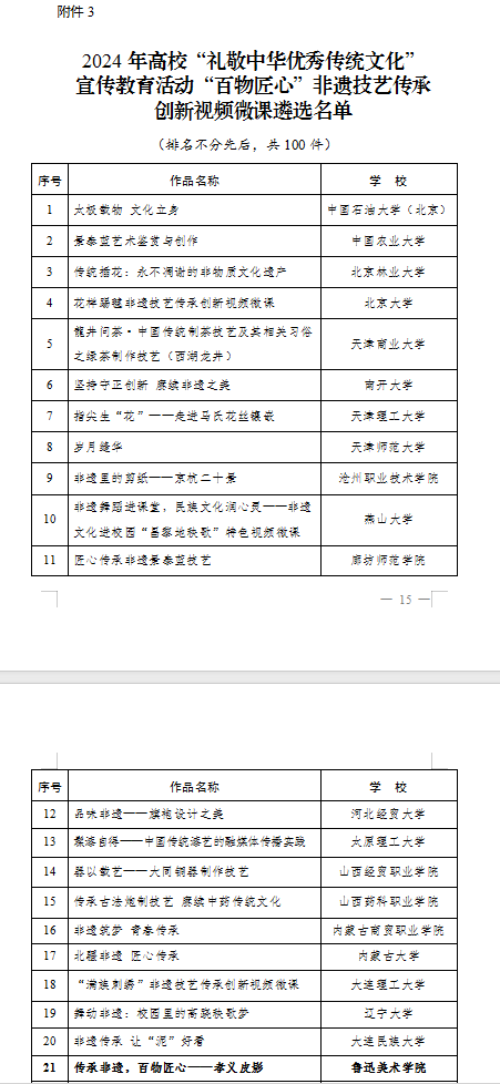 我院2023级研究生马于翔制作的《传承非遗,百物匠心——孝义皮影》在教育部办公厅举办的2024年高校“礼敬中华优秀传统文化”宣传教育活动中荣获“百物匠心”非遗技艺传承创新视频微课优秀作品奖。