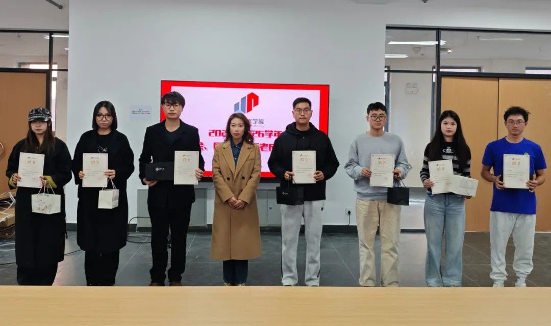 交接仪式环节温情满满。党总支副书记李智老师为上一届学生骨干颁发纪念品,辅导员王洋老师、赵谦老师颁发荣誉聘书,一份份荣誉见证了他们的默默耕耘与无私奉献,也承载着学院对他们过往工作的充分肯定。