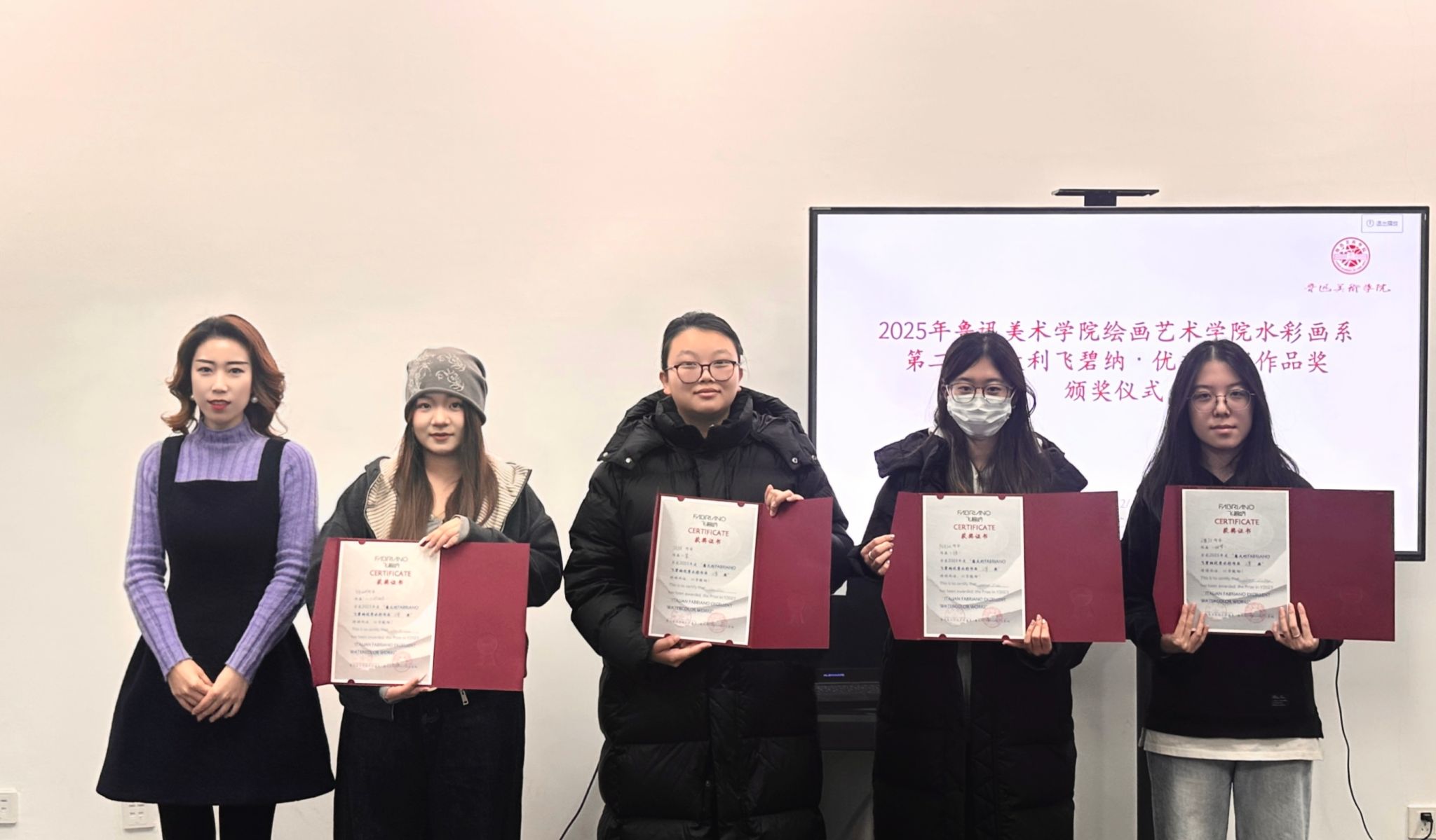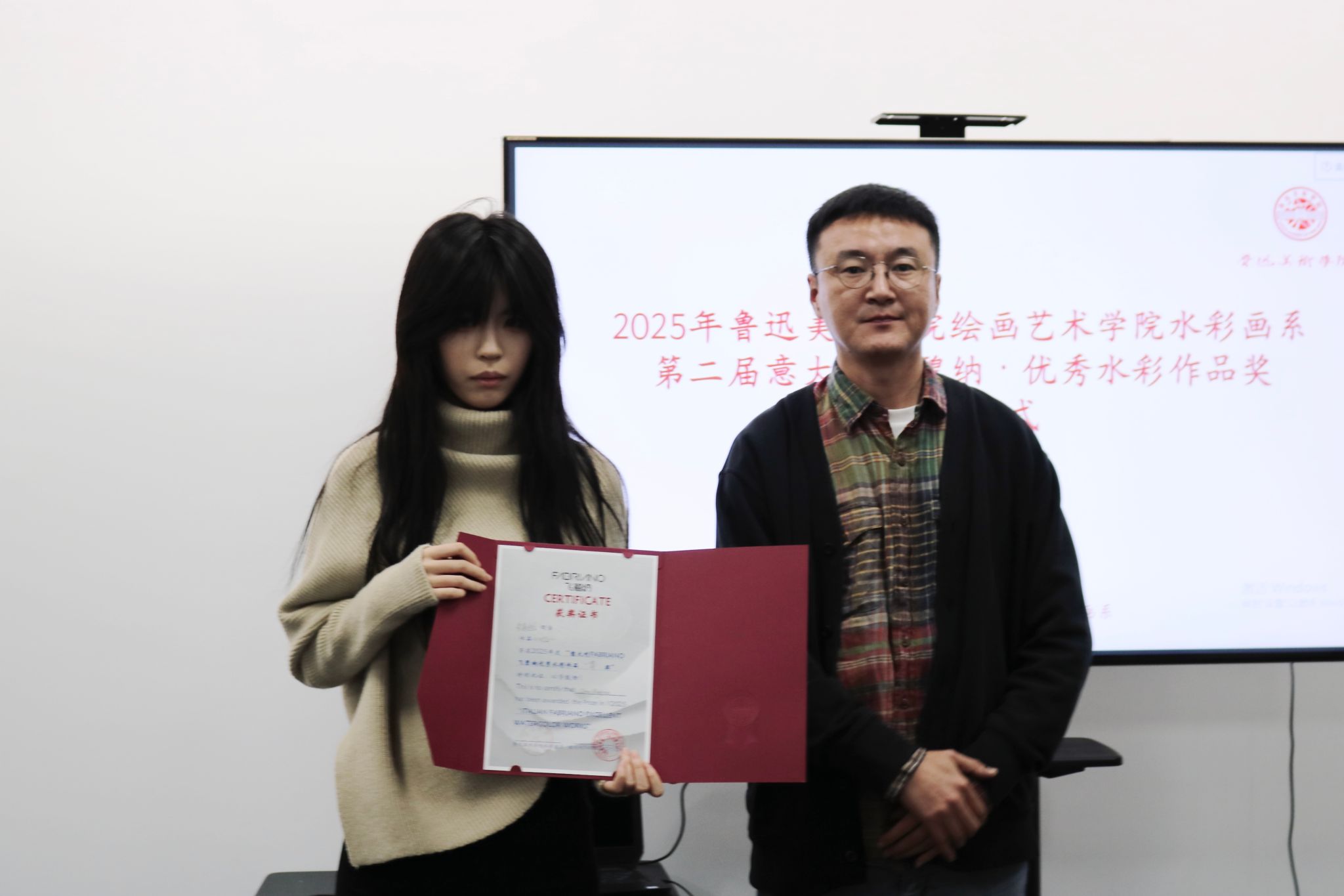 近日,鲁迅美术学院绘画艺术学院水彩画系2025年第二届意大利FABRIANO飞碧纳·优秀水彩作品奖颁奖仪式在水彩画系会议室举行。
