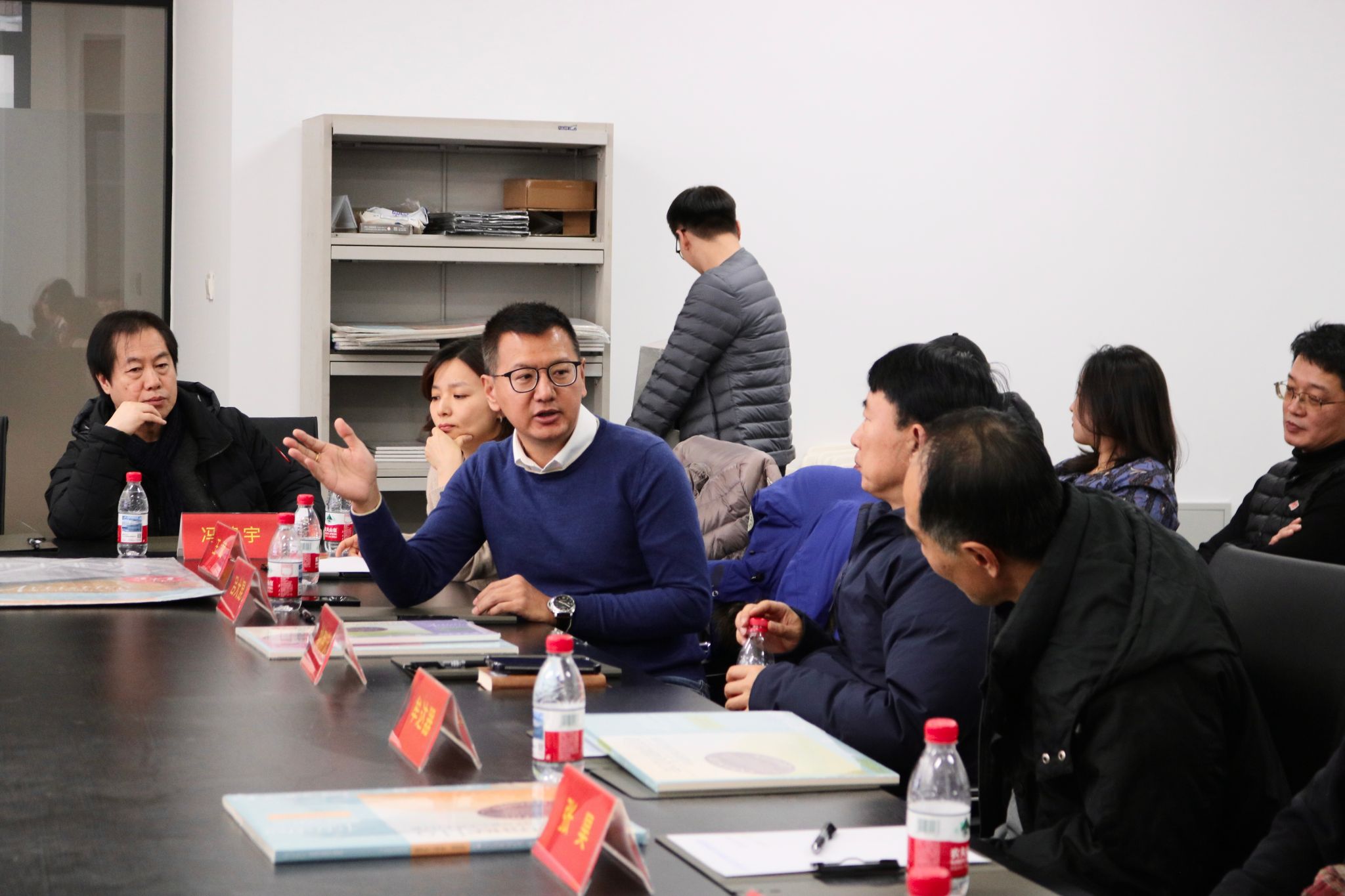 意大利FABRIANO飞碧纳大中华区总经理吕大昆先生、意大利FABRIANO飞碧纳市场经理王斌女士与水彩画系主任冯建宇教授就纸本水彩应用进行讨论