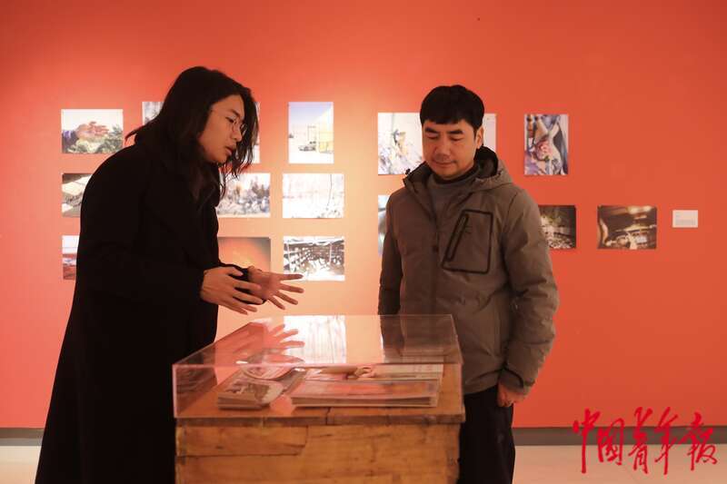 12月9日,辽宁沈阳,鲁迅美术学院美术馆,第11届学院优秀摄影作品展上,一名学生在观看天津美术学院学生韦锦春的作品《唐山》。中青报·中青网记者 孔斯琪/摄