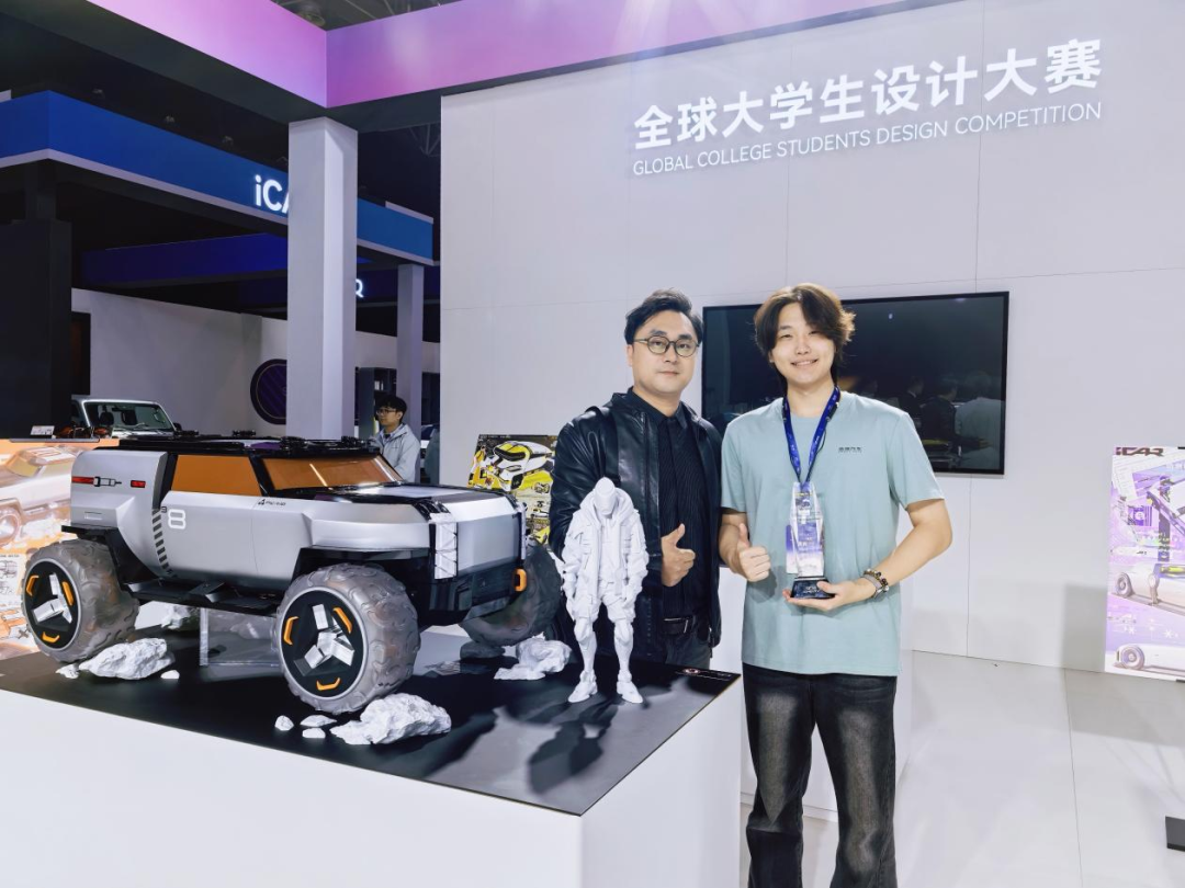 杨田的获奖作品《BRAVE》紧扣ICAR品牌“Fun Car”定位,以座舱为体验核心,通过模块化设计适配城市、户外、家庭三大场景,优化前备箱空间并打通内饰,传递“随时连接自然与亲友”的理念。比赛中,杨田在丁剑副教授的指导下,一路过关斩将,从初赛脱颖而出,先后晋级全球100强、50强、15强,更获得奇瑞汽车集团5万元专项资助与造型设计中心入职机会,经过近一个月的实习与作品深化最终成功夺冠。