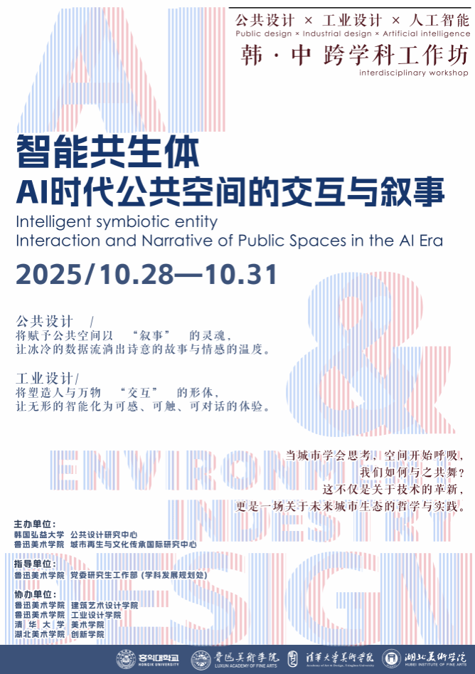 为贯彻落实中央人才工作会议精神,稳步推进我校 “双一流” 建设,积极推动学科交叉融合,强化研究生教育的国际化与实践化导向,我校城市再生与文化传承国际研究中心联合韩国弘益大学公共设计研究中心共同发起“智能共生体 AI时代公共空间的交互与叙事——中韩跨学科工作坊”暨第三届青年未来设计论坛。活动于10月28日至10月31日在韩国首尔举行,通过跨国学术研讨、项目协作等形式,为学校在设计学领域的特色发展与国际影响力提升注入了新动能。