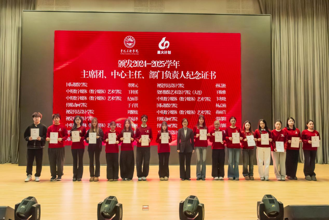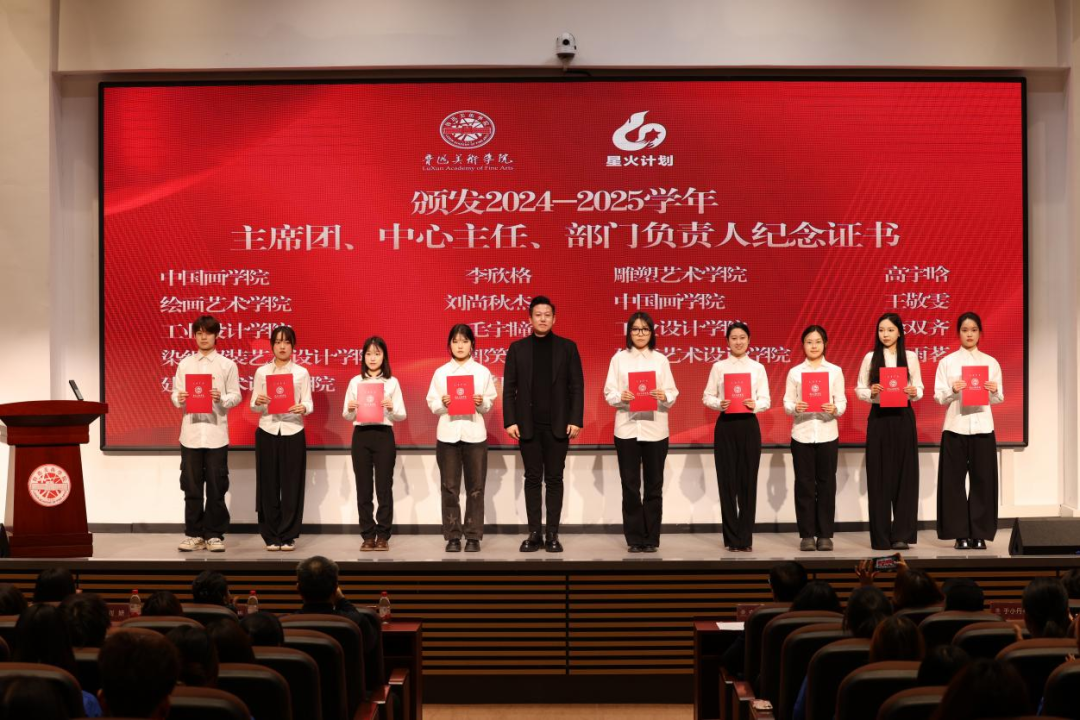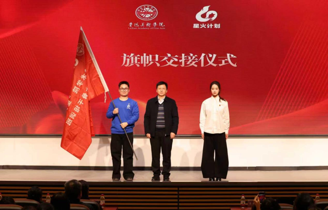 “星火计划”是学校人才培养的品牌化项目和重要平台,旨在搭建美院学生的培训和交流平台,培养敢于担当、勤于探索、勇于实践、甘于奉献的优秀学生骨干。会上,学校党委副书记史保东为第三期“星火计划”学生骨干培训班授旗。