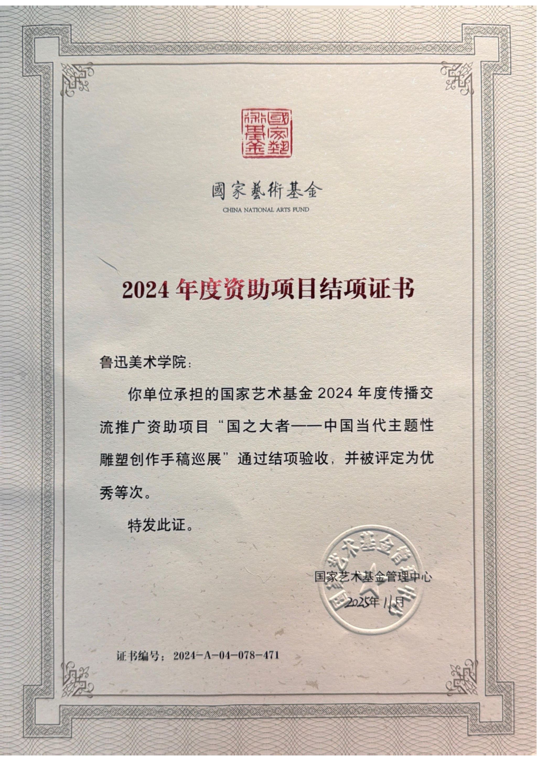 近日,国家艺术基金管理中心发布结项证书,我校承担的国家艺术基金2024年度传播交流推广资助项目“国之大者——中国当代主题性雕塑创作手稿巡展”顺利通过结项验收,获评优秀等次。这一荣誉是对学院在主题性艺术创作与文化传播领域工作的高度肯定,也是本年度巡展工作取得的标志性成果。