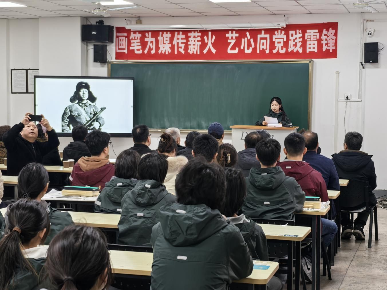 为深入践行习近平总书记关于弘扬雷锋精神的重要指示精神,学习新时代雷锋精神践行者金城龙同志舍己救人、英勇奉献的英雄事迹,充分发挥离退休老党员、老艺术家的先锋模范作用与育人优势,3月5日下午,学校关工委、离退休教职工党总支联合附中党总支,在附中校园成功举办“画笔为媒传薪火 艺心向党践雷锋”学雷锋主题党日活动。通过暖心助学、专题党课、丹青共绘,活动将红色教育、爱心帮扶与艺术传承深度融合,让雷锋精神在校园落地生根、代代相传。